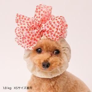 リボンが刺繍されたコットンレースにイチゴ柄のチュールをお花に見立ててお作りいたしました。