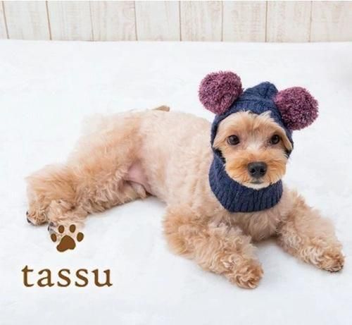 ペットウェア 【tassu タッス Re-Knit 耳付きニット帽 アイボリー・ネイビー・ベージュ】