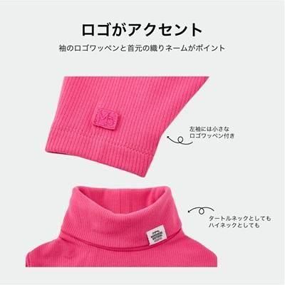 裏起毛で首まで暖かいハイネックロングスリーブTシャツ。